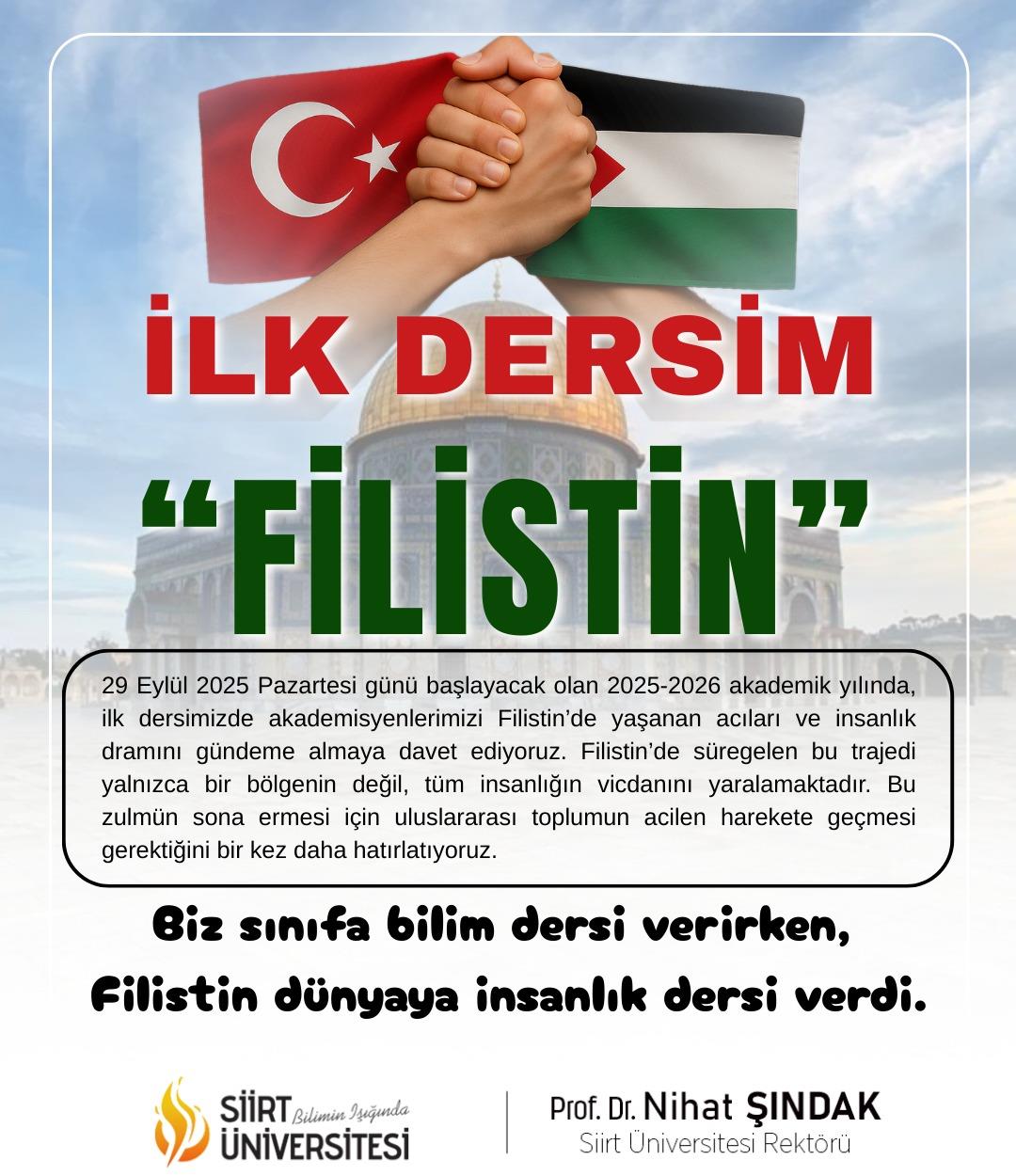 Rektörümüz Prof. Dr. Nihat Şındak’tan Akademik Yılın İlk Dersi: İlk Dersim Filistin